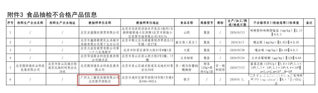 近日,北京市场监督管理局官方发布的食品安全监督抽检信息显示,太二酸菜鱼北京新华西街一门店的筷子被检测出了阴离子合成洗涤剂,生产/加工/购进/检疫日期为2024年6月12日。